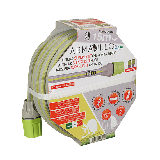 Inovativno crijevo za vodu koje je 3 puta lakše od standardnih crijeva. Izuzetno je fleksibilno i dugotrajno jer posjeduje antitorziono dejstvo. Uz crijevo se dobijaju dva patentirana priključka. Ima zaštite od stvaranja algi, stoga je zdravstveno bezbjedno.