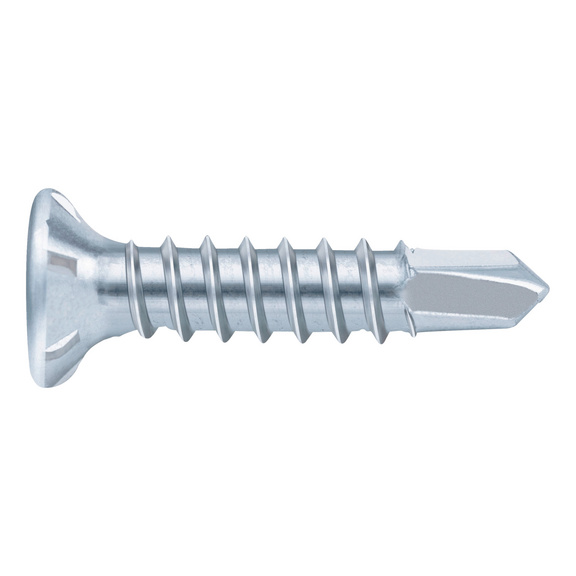 Samobušeći vijak FEBOS za PVC stolariju sa upuštenom glavom od pocinkovanog čelika. Ovaj bakarisan vijak se koristi za spajanje plastičnih profila sa metalnim armaturama, kao i za pričvršćivanje okova na profile sa metalnim uloškom.