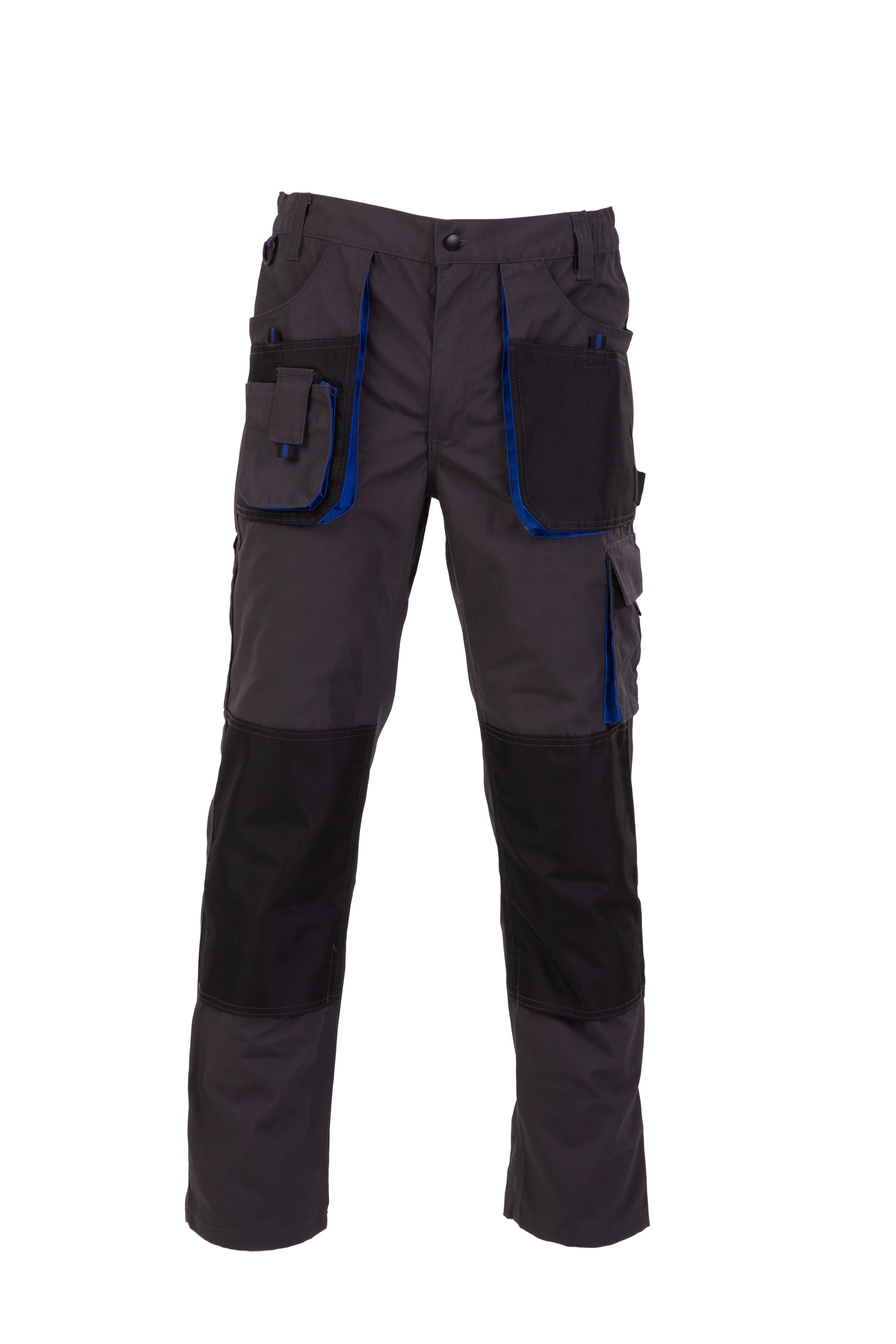 Izrađeno je od tkanine visokog kvaliteta (65% poliester i 35% pamuk) sa ojačanjima od poliestera na mjestima izloženim većem habanju - koljenima, u sivoj boji sa plavim detaljima.