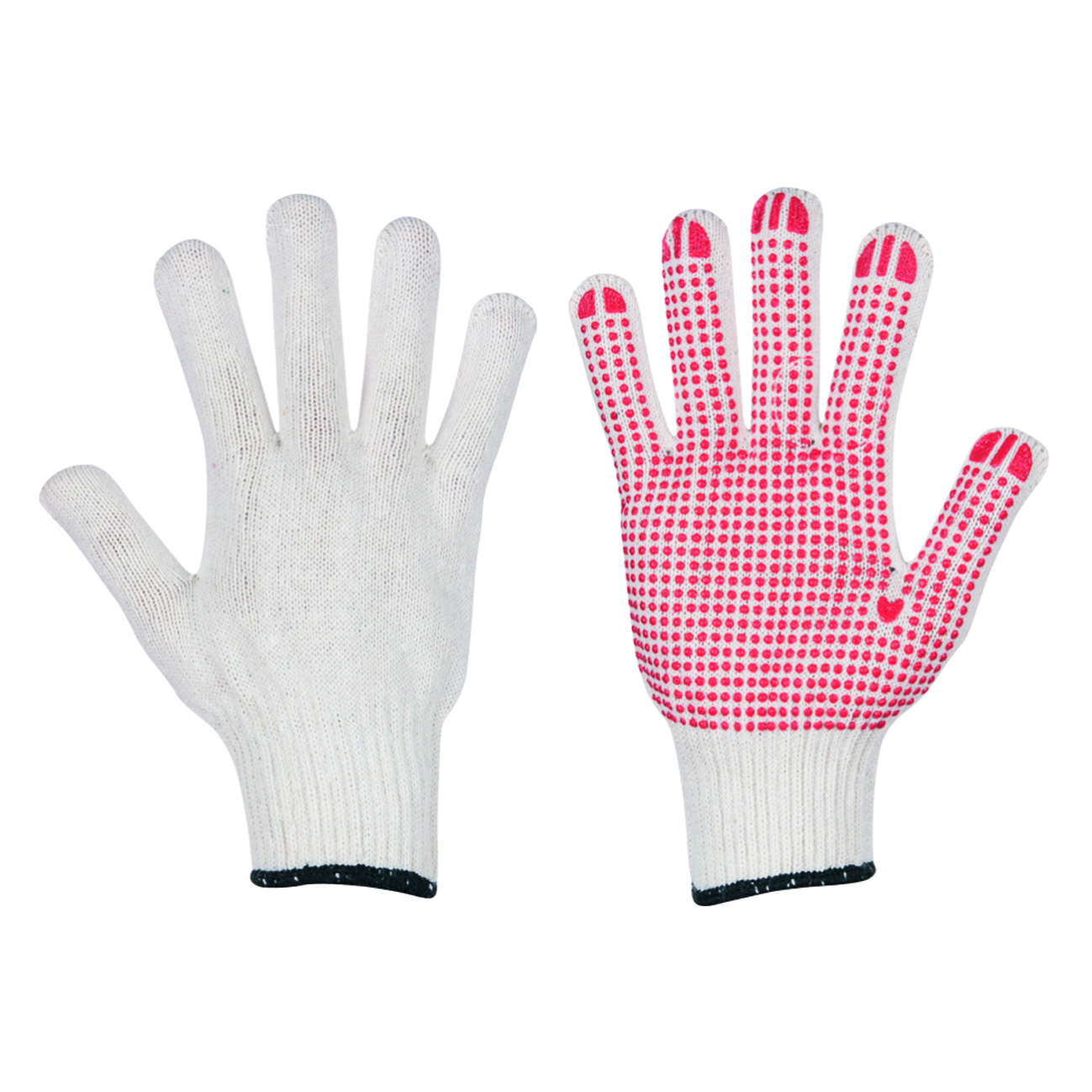 Meka i udobna bešavna rukavica izrađena od mešavine pamuka i poliestera. Na dlanu presvučene tačkicama od PVC-a za čvršći hvat i povećanu otpornost na abraziju.