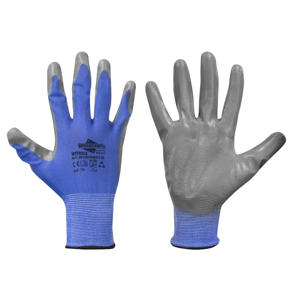 Workshoper Nitril su meke i elastične bešavne rukavice, proizvedene od poliestera, presvučene na dlanu glatkim nitrilom. Otporne su na ulja, goriva, blaže rastvore kiselina, organske rastvarače.