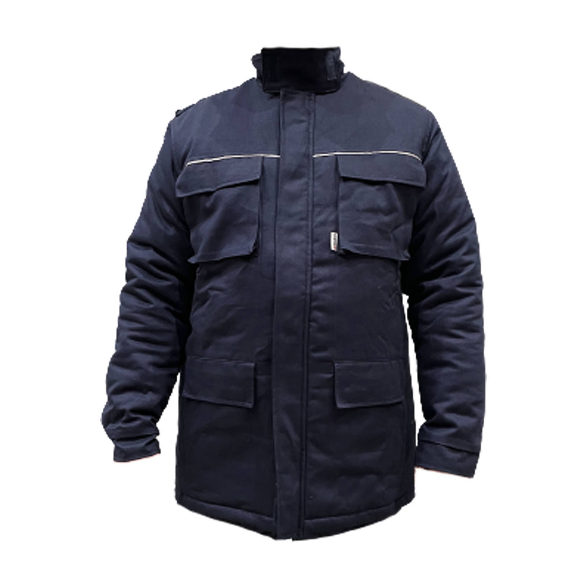 Duža zimska jakna od 100% pamuka sa termoizolacionom postavom od poliestera, kopčanje je na rajsferšlus sa preklopnom trakom, ima više praktičnih dubokih džepova. Jakna je pogodna za zavarivače.